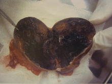 さらに進行してしまった子の胆嚢です。とても流れる状態ではありません。この子はすでに黄疸がおこっていました。