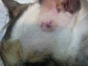 肥満細胞腫(ひまんさいぼうしゅ)とは、中高齢期の犬や猫でよくみられる腫瘍の1つで猫ちゃんの場合頭頚部・目の周り・耳介に発生することが多いです。