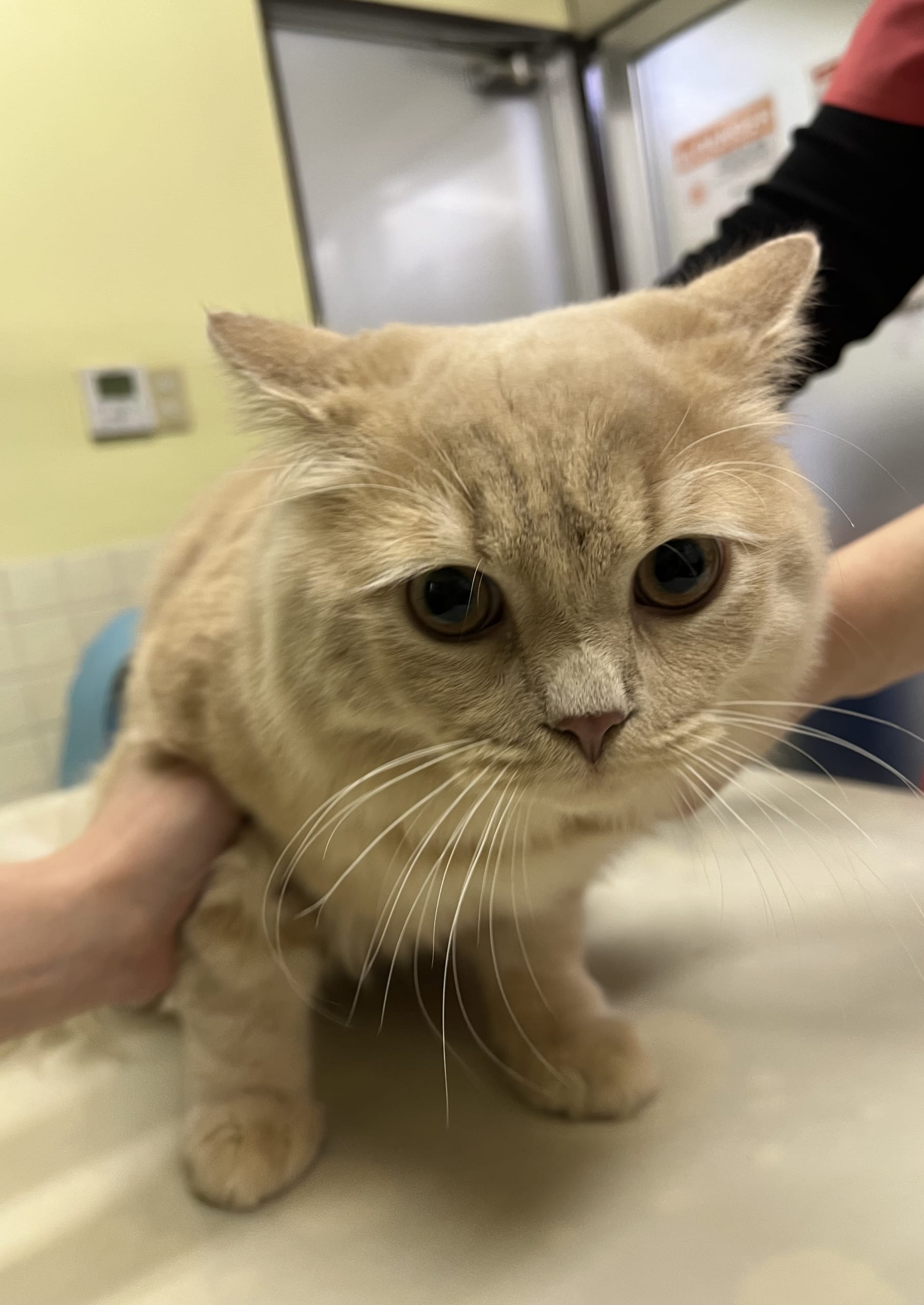 今回紹介させていただくのは、去勢手術の日帰りレーザー手術をうけられた7ヶ月スコティッシュフォールドの男の子です。