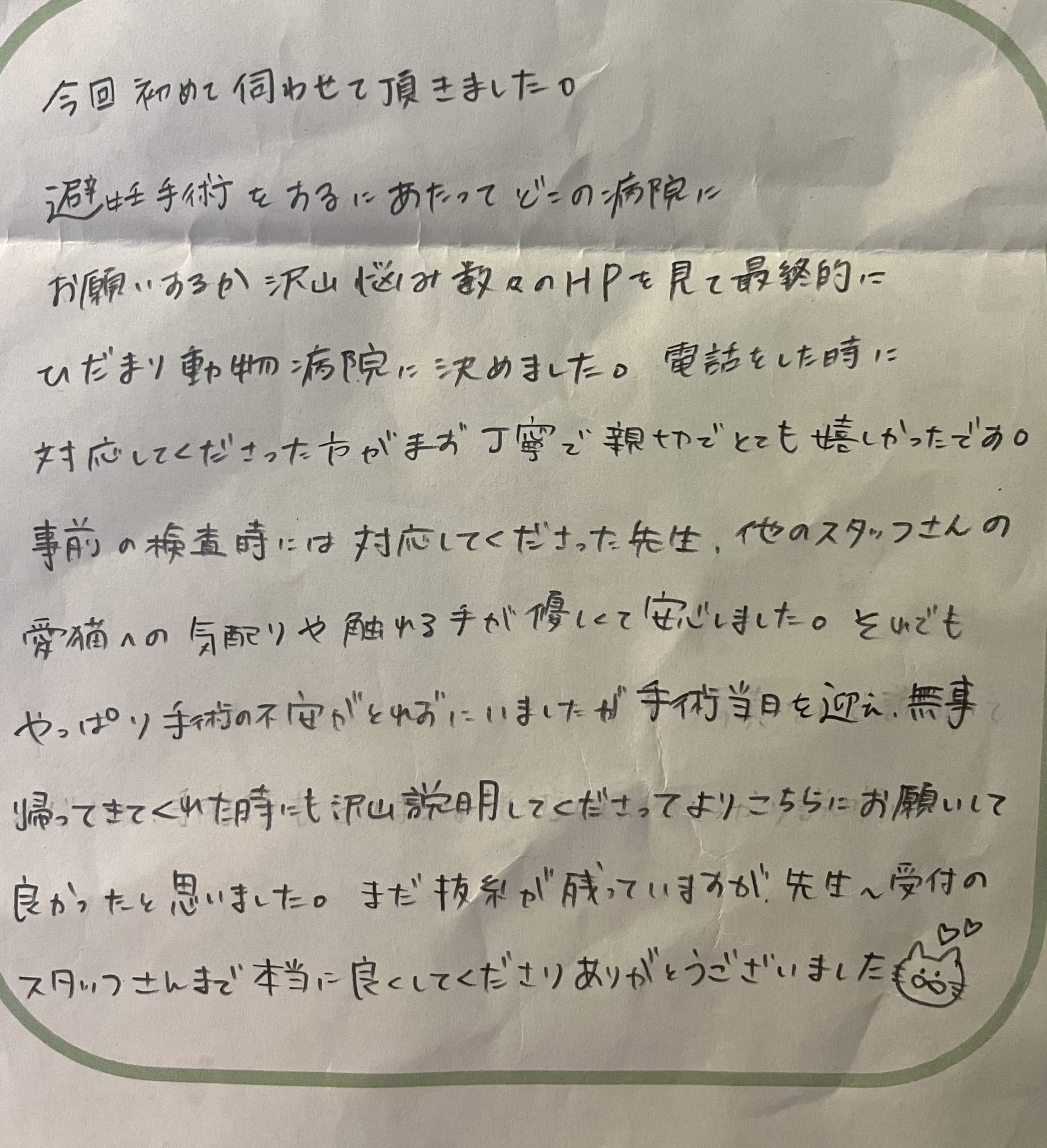 発情時の鳴き声が大変になってしまい避妊手術を希望されご来院されました。