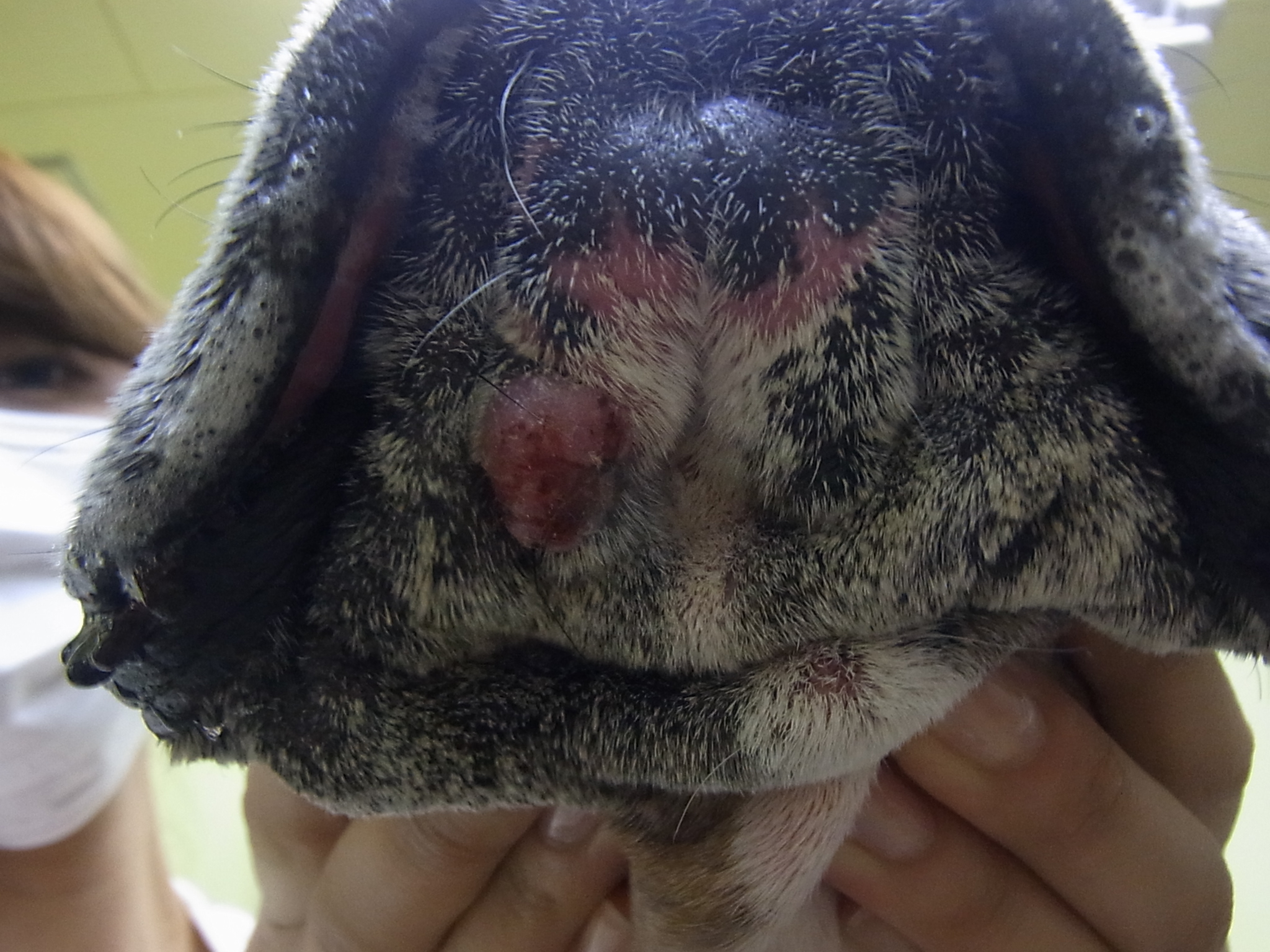 尻尾の付け根と顎の2か所に2cmほどの体表腫瘤があり、切除する事になりました。