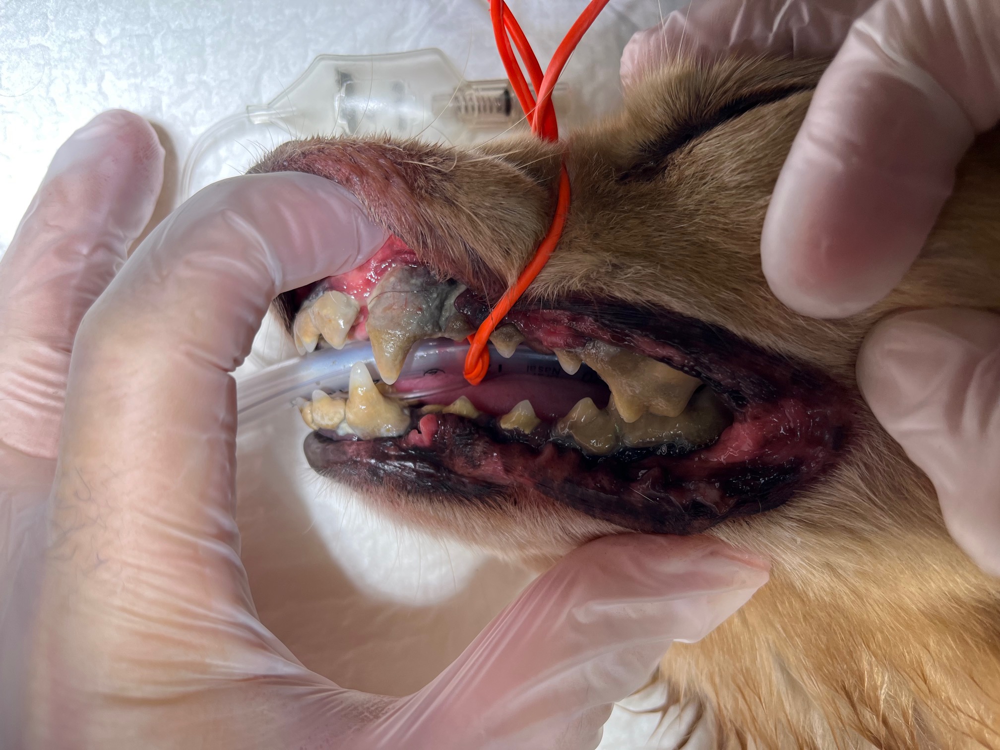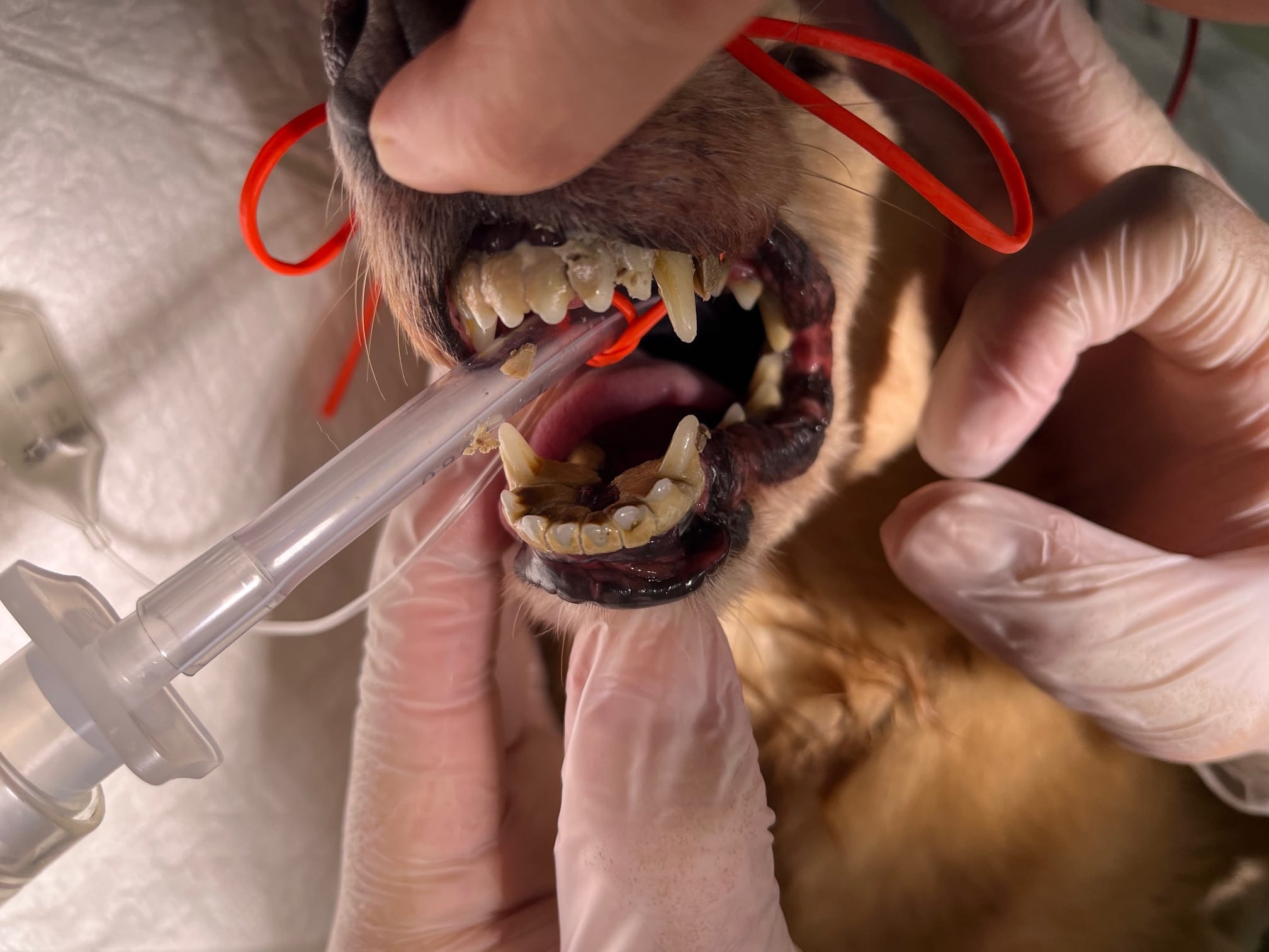 歯の方は、口を痛がってお口をなかなか見せてもらえないほど触ると痛がっている様子でした。