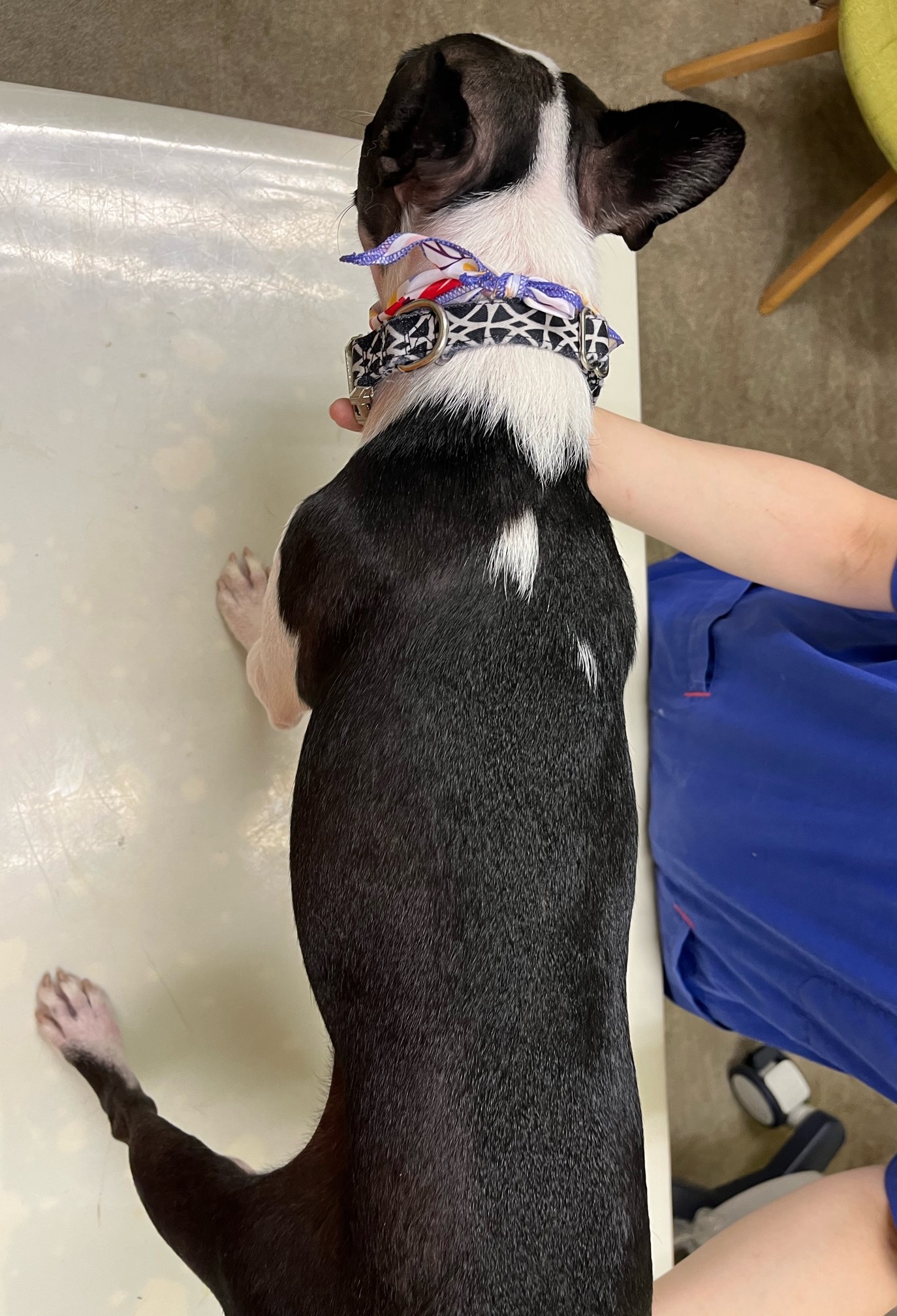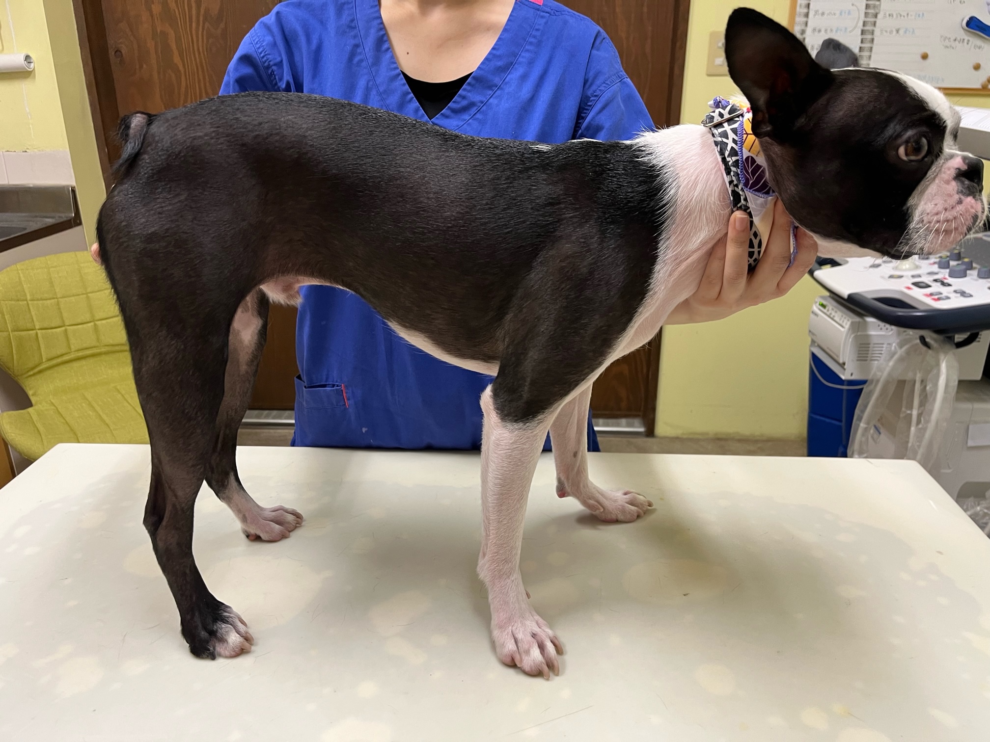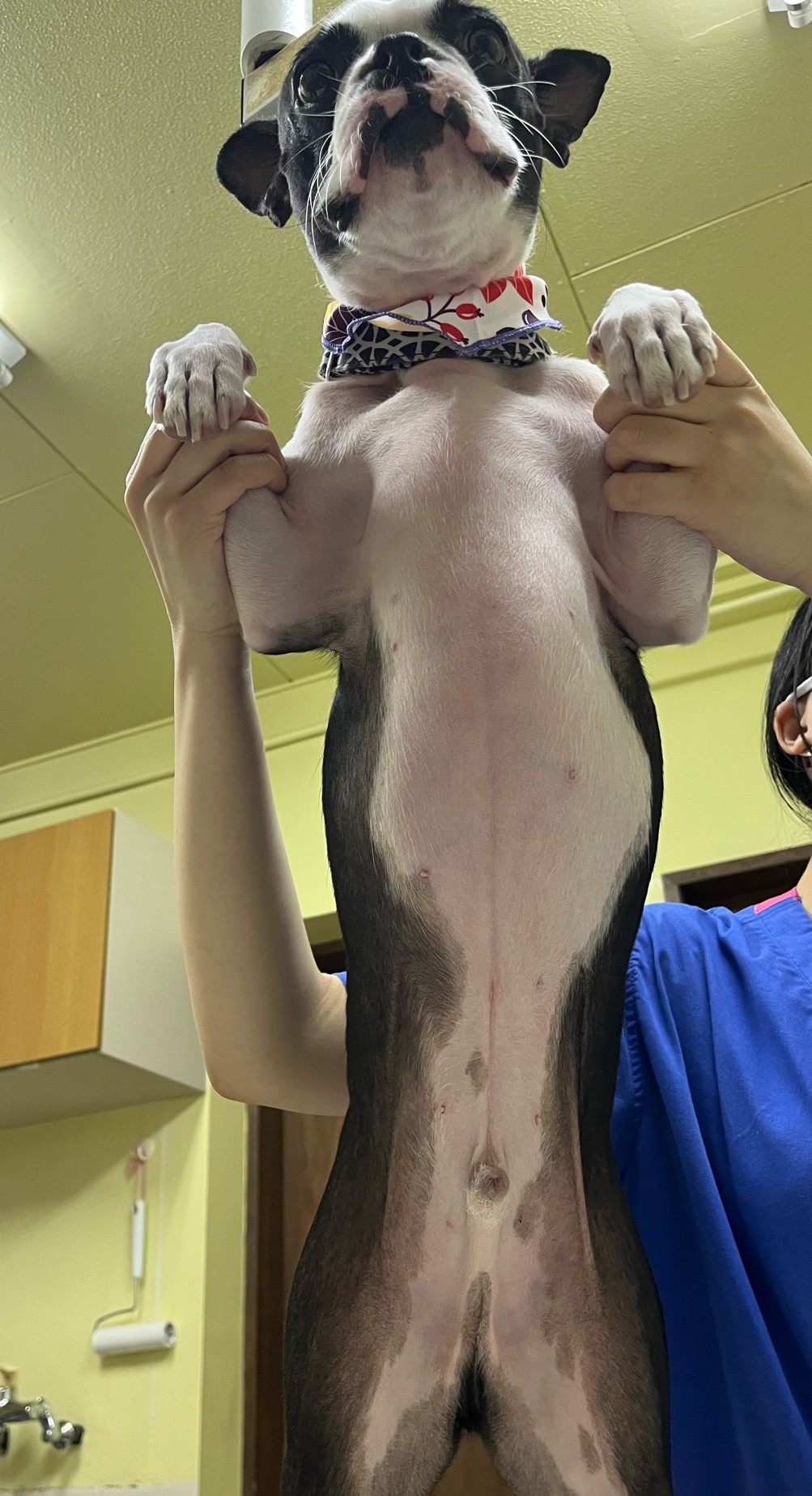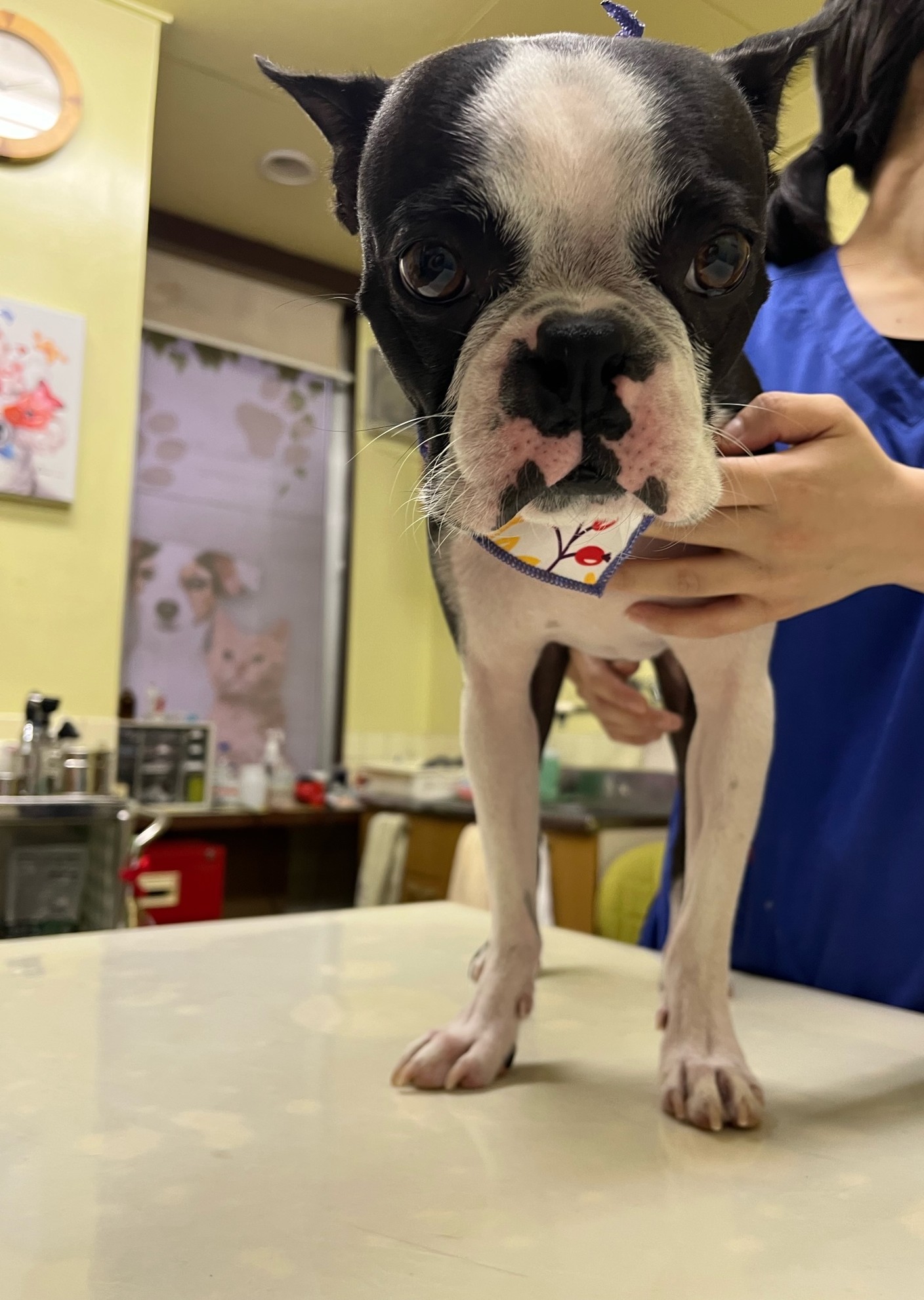 今回紹介させていただくのは薬浴で通われているボストンテリア2歳の男の子です。