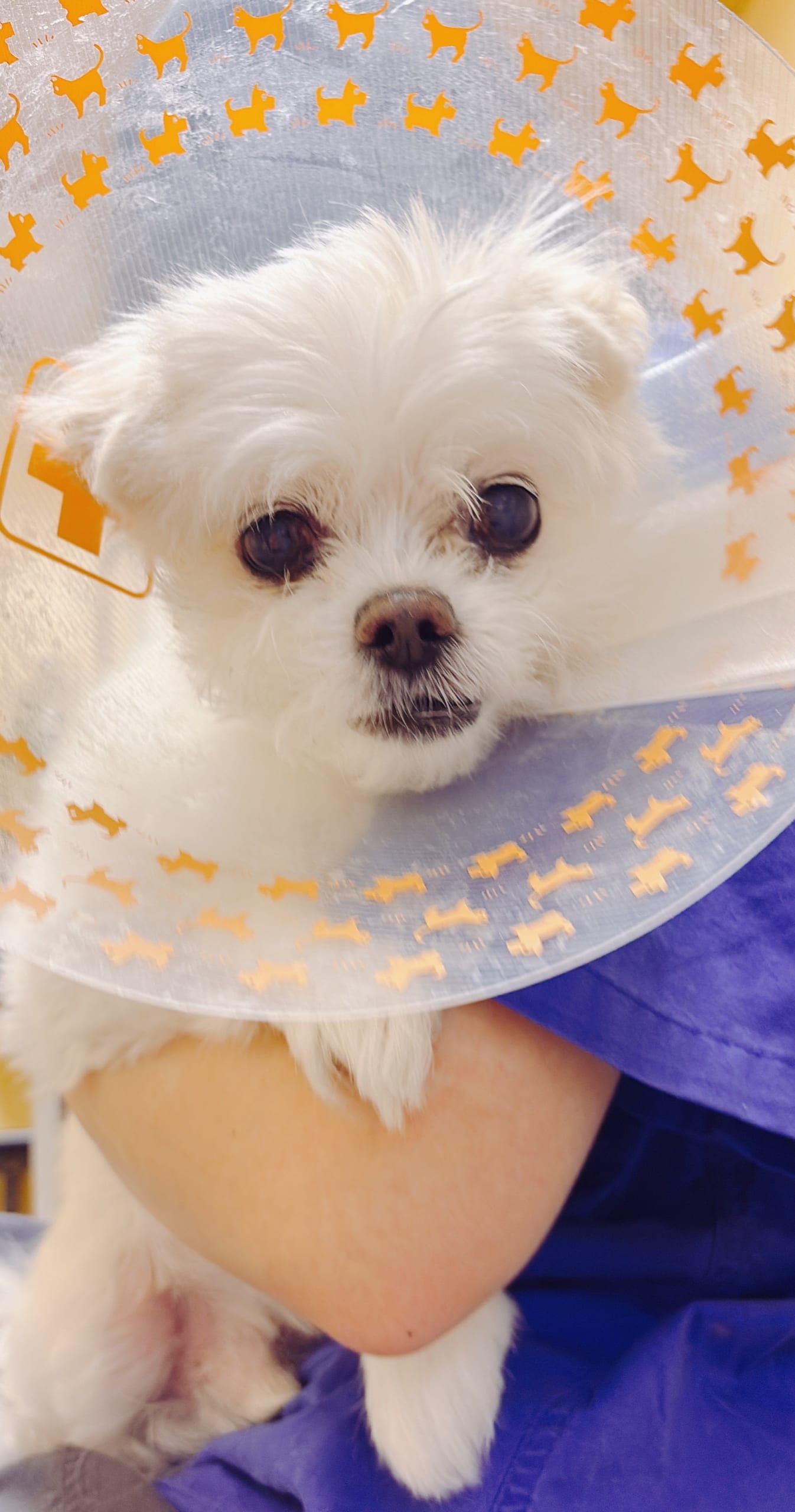 術後は痛がる様子もなく、ケロッとして自分からすたすた歩いて尻尾をふりふりする姿をみて飼い主様も安心されていました。前回の手術の時も痛がる様子がなかったとのことで何よりです。