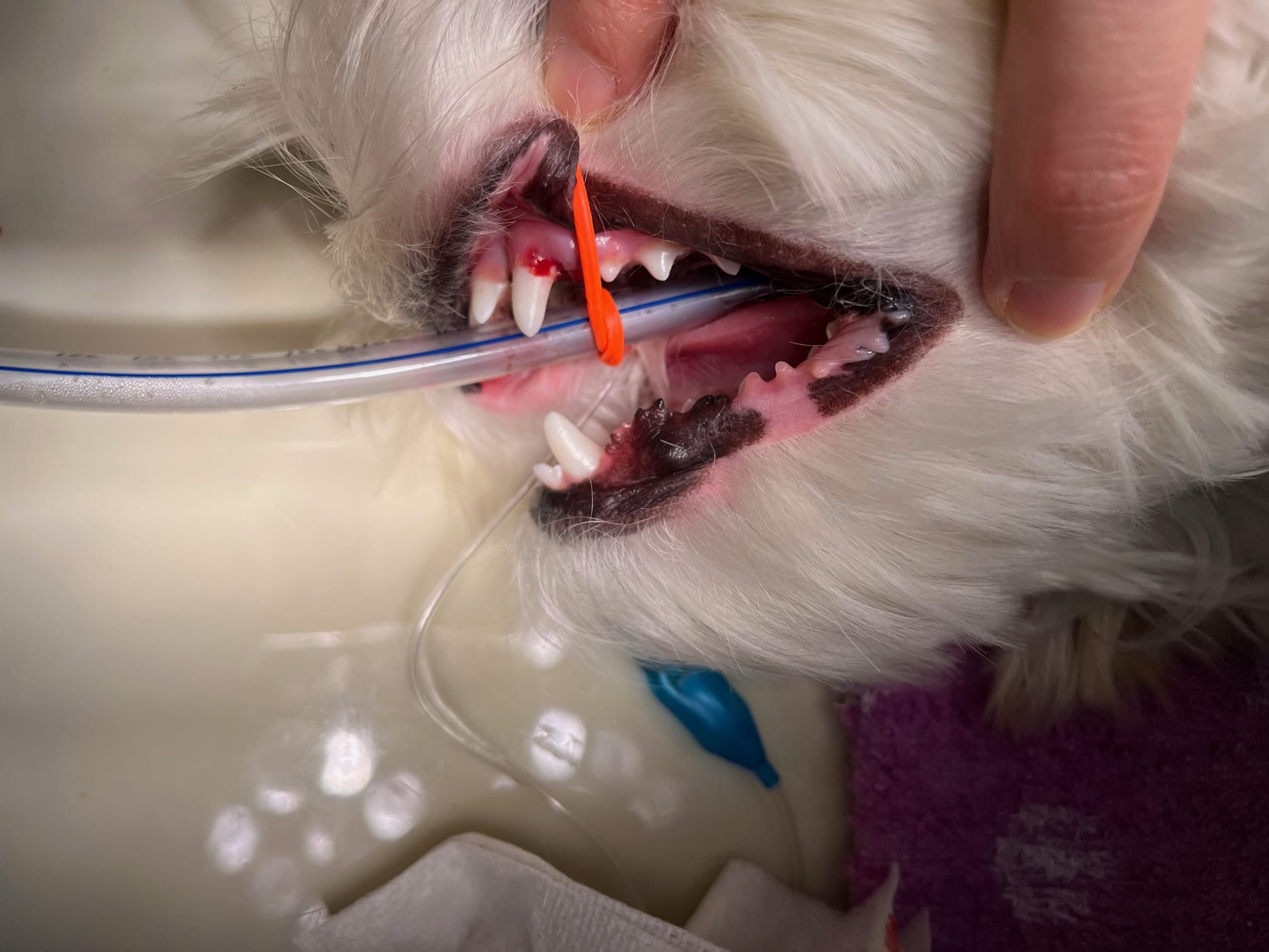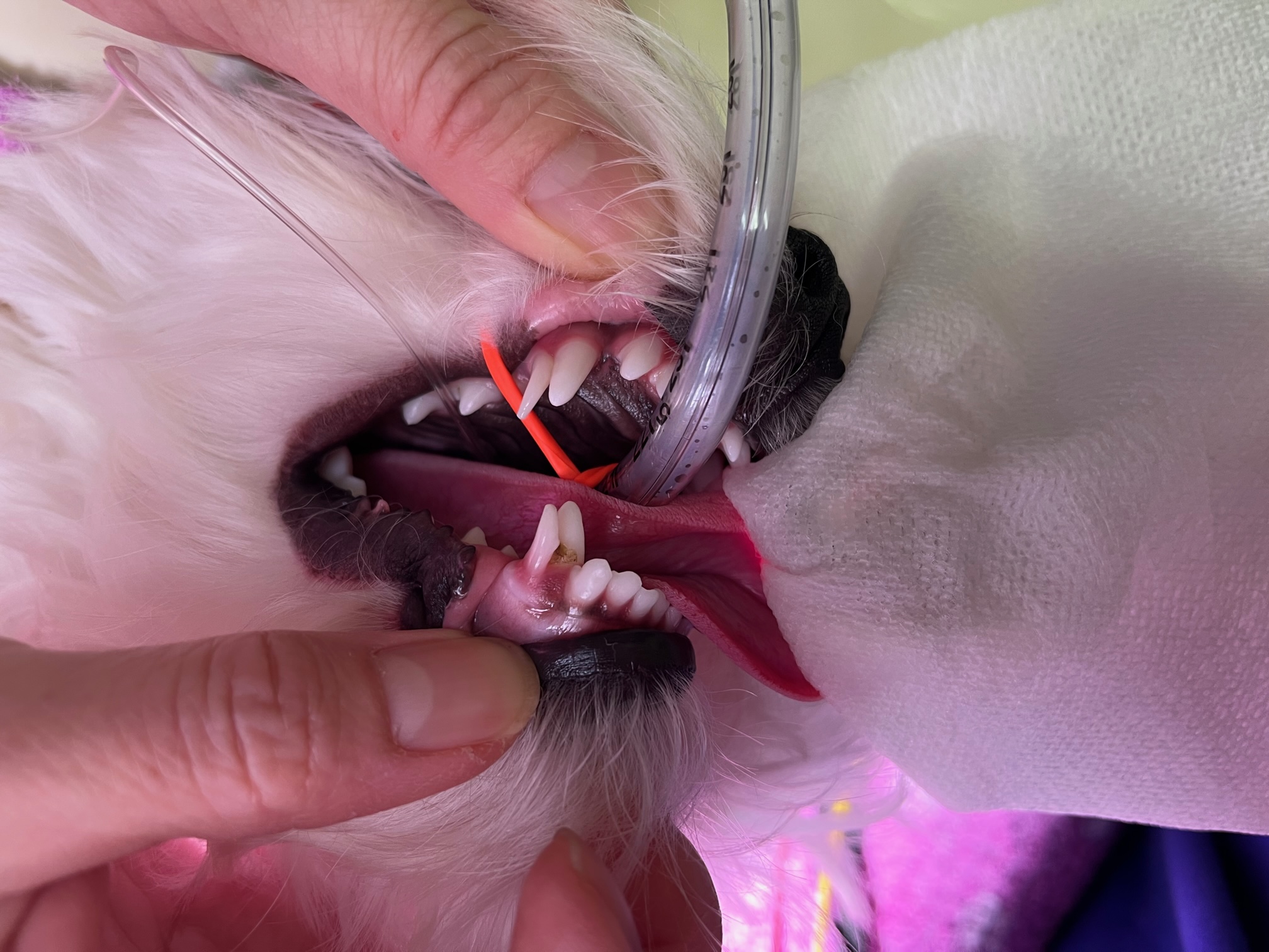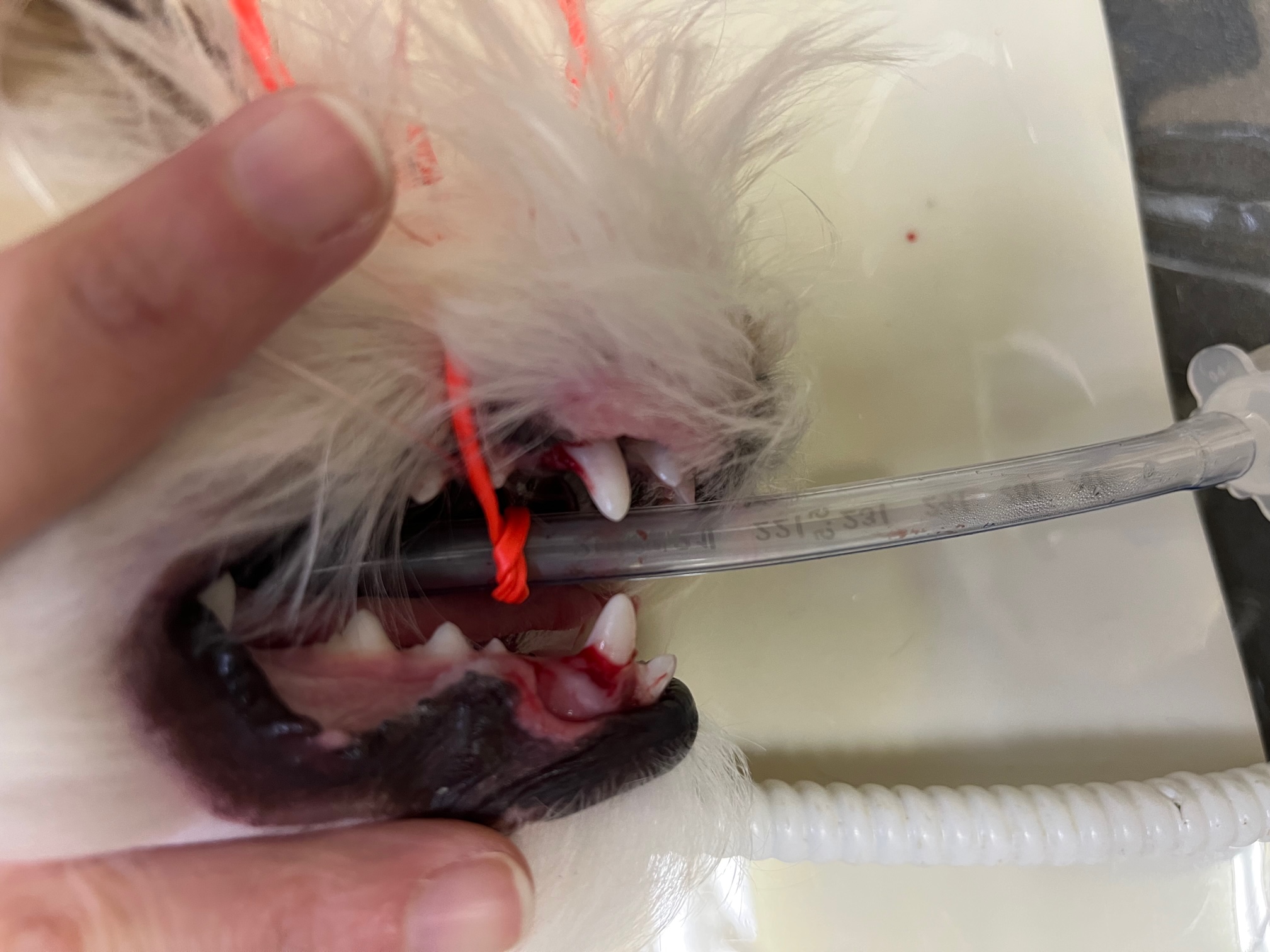 乳歯が抜けずに3本も残っていましたので、今回去勢手術と同時に乳歯も抜歯しました。