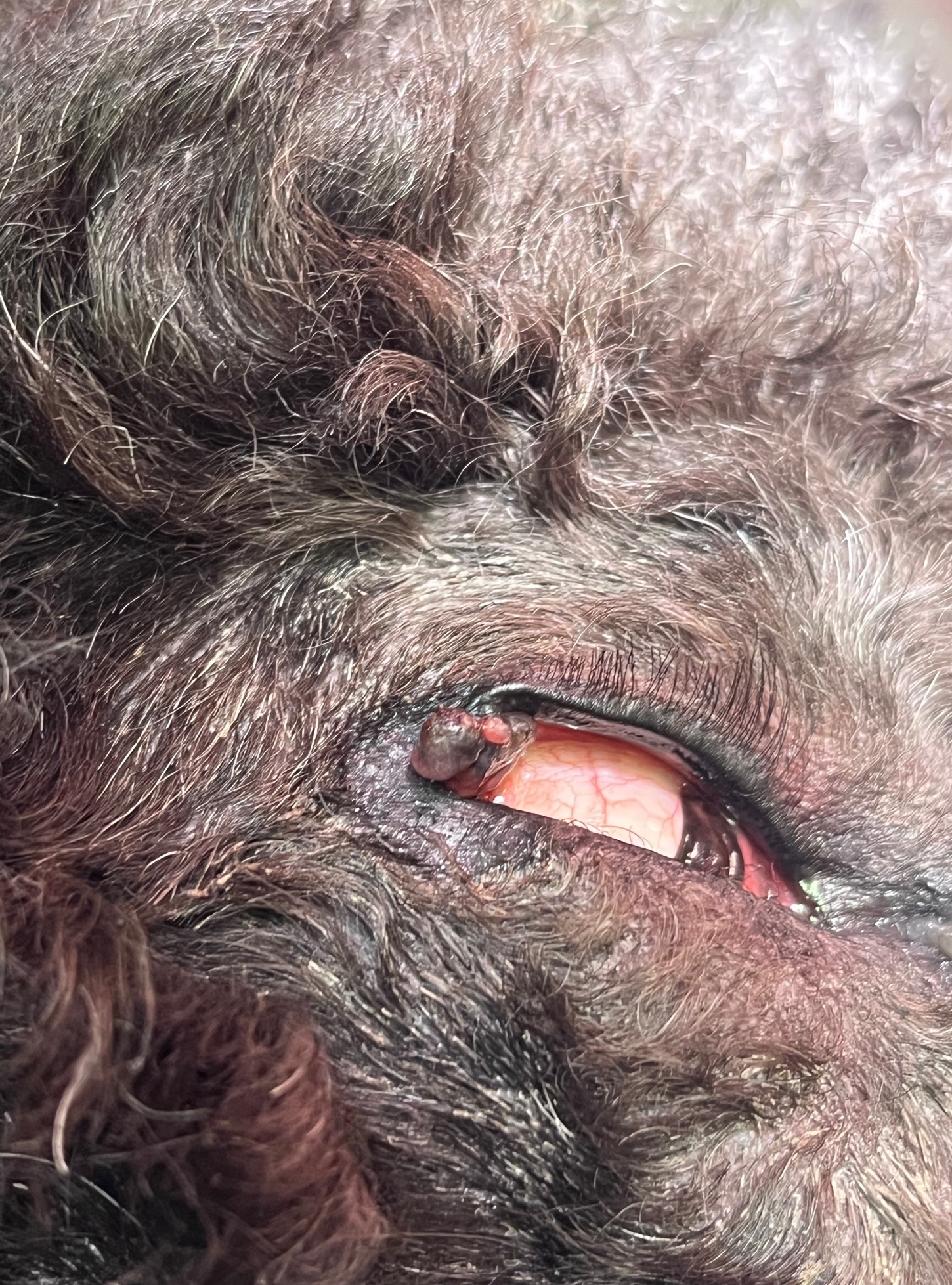今回紹介させていただくのは眼瞼腫瘤の切除の日帰りレーザー手術をうけられた7歳スタンダードプードルの男の子です。