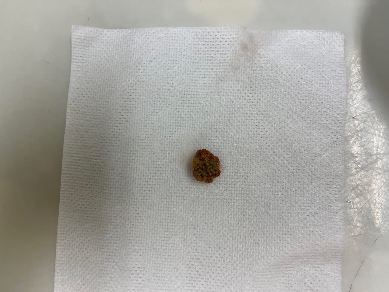 検査をしたところ膀胱の中に大きな結石ができており、血尿を繰り返しているご様子でした。