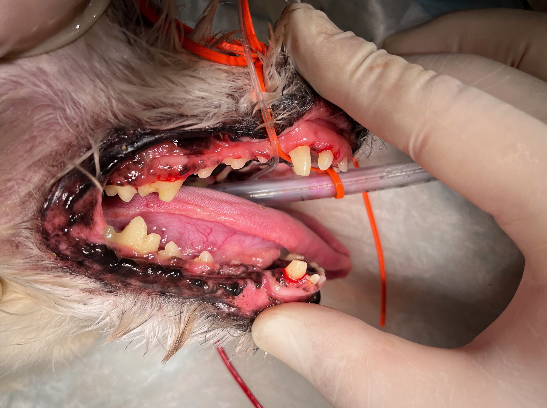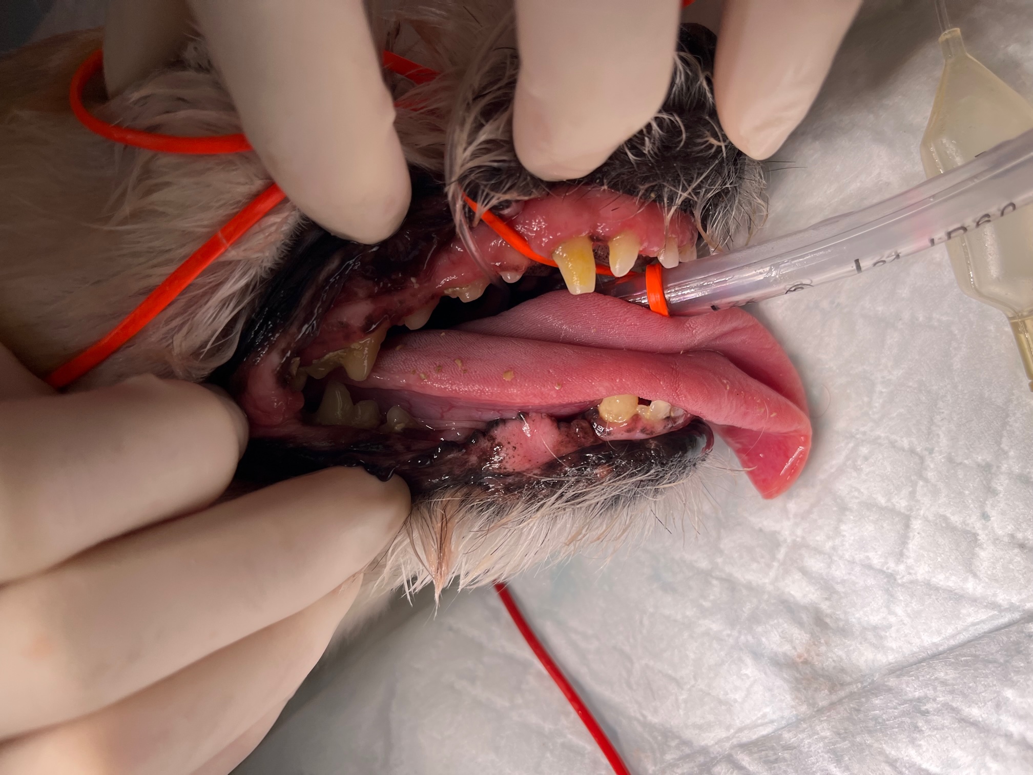 膀胱結石と乳腺腫瘍、体表腫瘤切除、歯石取りの日帰りレーザー手術をうけられた16歳ミックス犬の女の子