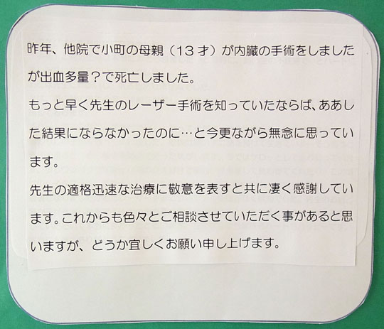 直腸癌の日帰りレーザー手術を受けられた柴犬13才