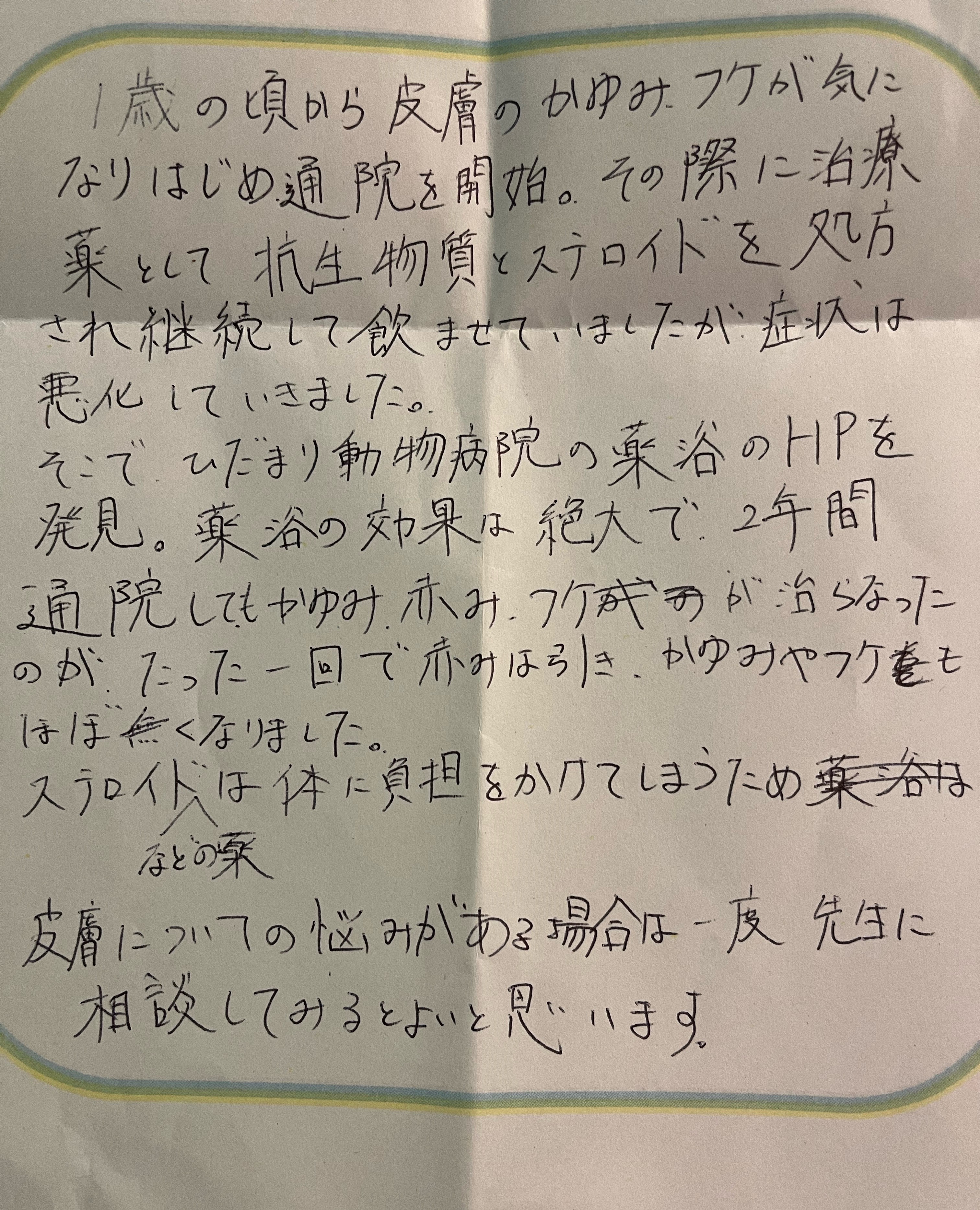 当院をご利用いただいている飼い主さんから寄せられた声をご紹介します。