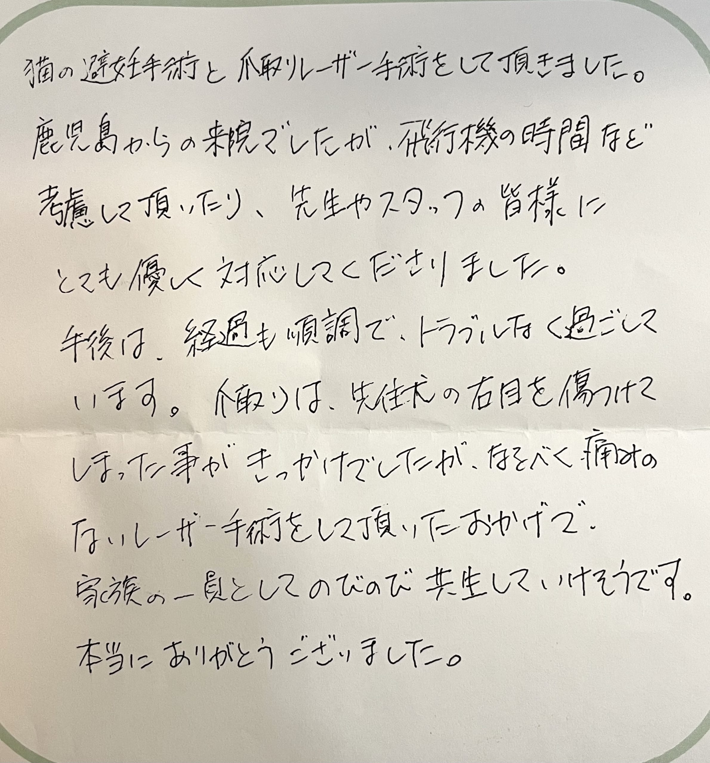 抜爪と避妊手術の日帰りレーザー手術をうけられた日本猫の女の子